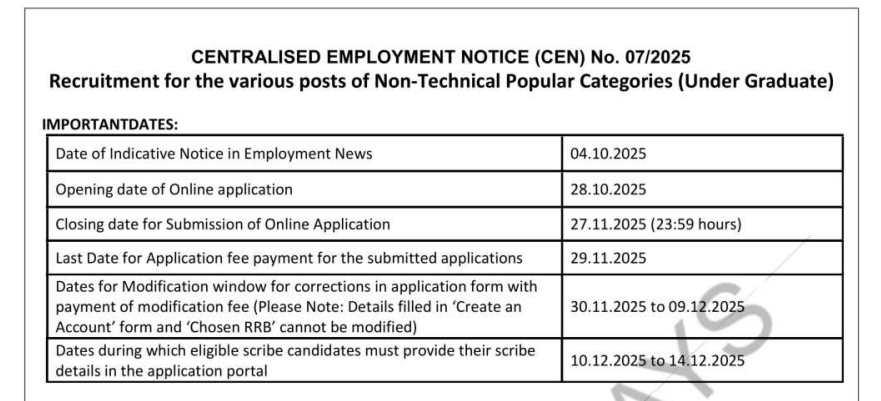 The official RRB NTPC Notification 2025 CEN 07/2025 has finally been released by the Railway Recruitment Board (RRB)!